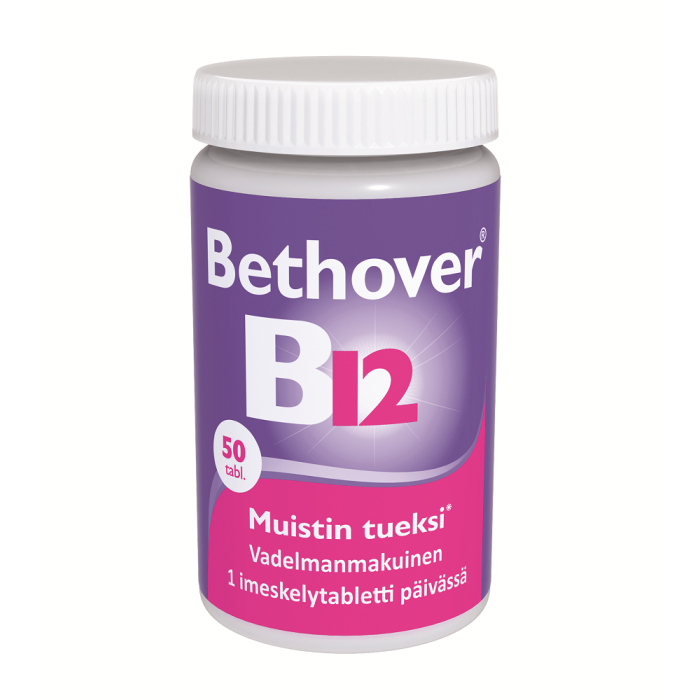 Imeskelytabletti on imeytymisen kannalta erinomainen vaihtoehto, koska B12 vitamiini imeytyy tutkitusti myös suun limakalvojen kautta. Vain luonnollisia väri- ja makuaineita. B12-vitamiini edistää hermoston normaalia toimintaa ja normaaleja psykologisia toimintoja.