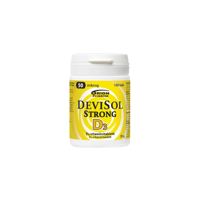 Raikkaasti sitrukselta maistuva DeviSol Strong sisältää 50 mikrogrammaa hyvin imeytyvää D3-vitamiinia. 50 mikrogramman vahvuus sopii erityisesti todetun matalan D-vitamiinitason nostoon sekä harvempaa annostusta suosiville. Makeutettu ksylitolilla ja sorbitolilla ja sisältää vain luonnollista sitrusaromia. Helposti suussa hajoavan tabletin voi joko imeskellä, pureskella tai antaa hitaasti liueta suussa. Laktoositon (maidoton), gluteeniton, hiivaton, sokeriton. Ei sisällä soijaa tai liivatetta.