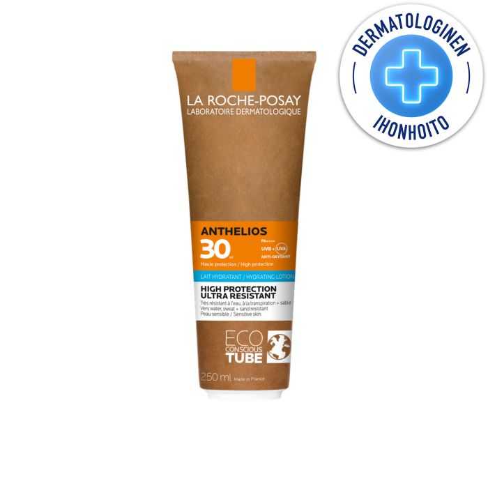 ANTHELIOS AURINKOSUOJAVOIDE SPF30. Korkea suoja auringon UVA- ja UVB-säteilyä vastaan. Vartalolle ja kasvoille.. Erittäin vedenkestävä sekä hikoilun- ja hiekankestävä. ERITTÄIN KEVYT KOOSTUMUS Ultrakevyt koostumus antaa erittäin korkean aurinkosuojan, joka on iholla lähes huomaamaton. Herkälle ja aurinkoherkälle iholle. Hajusteeton.