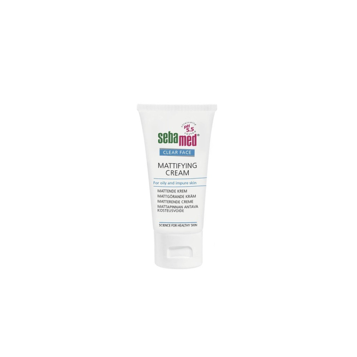 Sebamed Clear Face Mattifying Cream hillitsee rasvoittuvan ihon kiiltoa ja vähentää talinmuodostusta. Öljytön, kevyt voide imeytyy nopeasti, kosteuttaa sekä antaa iholle kauniin mattapinnan. Voide ei sisällä akneiholle sopimattomia öljyjä tai emulgaattoreita. pH 5,5 vahvistaa ihon luonnollista suojaa ja auttaa siten ehkäisee finnejä ja mustapäitä aiheuttavien bakteerien kasvua. Dermatologisesti testattu. Suositellaan sekaiholle ja rasvaiselle, kiiltelevälle iholle.